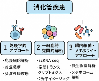 - これら3つのアプローチを統合的に活用することで、消化器疾患の病態を多階層的に解析し、将来的には個別化医療や新規治療標的の創出に貢献することを目指す。